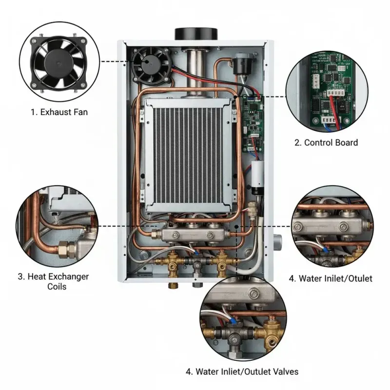 Segurança Reforçada: Equipado com múltiplos sistemas de proteção (detecção de chamas, superaquecimento, falha de água), assegura a tranquilidade e a confiabilidade para toda a família.