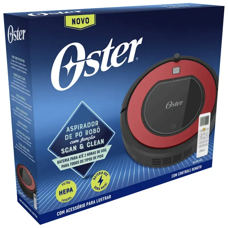 | Conteúdo da Embalagem | 1 Aspirador de Pó Robô Oster Keep Clean Red, 20W, Vermelho / Preto - OASP303 Bivolt |