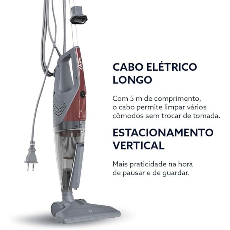 | Conteúdo da Embalagem | Aspirador de Pó Vertical Oster OASP610 e bocais específicos para cantos e frestas |