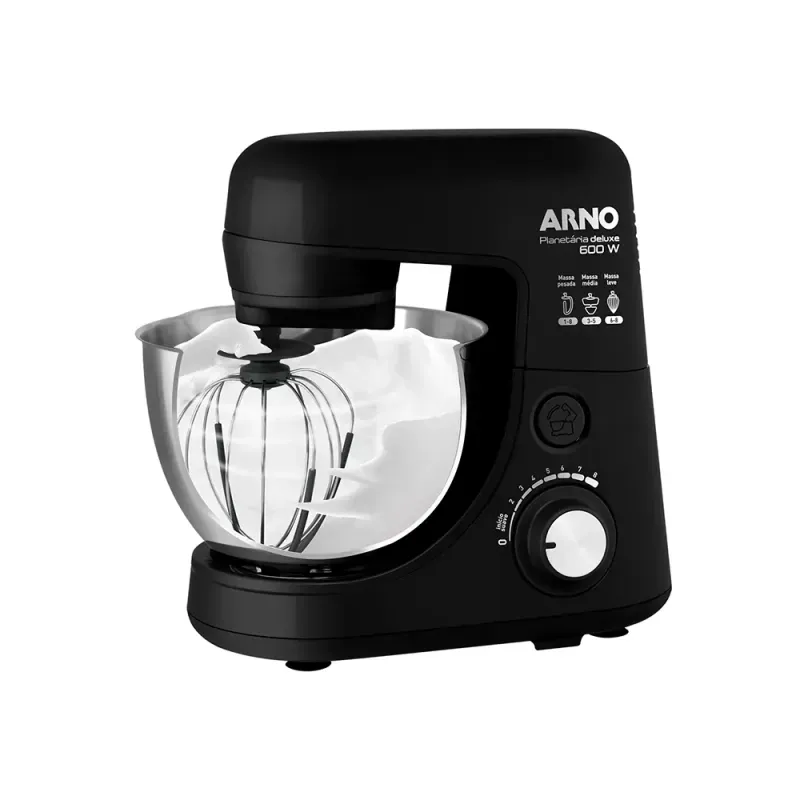 | Conteúdo da Embalagem | Batedeira Planetária Arno New Deluxe, 8 Velocidades, 600W, Tigela de Inox, Preta - SX71 220V |