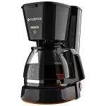- Possui jarra de vidro, fácil de lavar e não deixa resíduos nem odores. - Faz 18 cafés. - Possui indicadores de medida de água, na parte interna, e de café na jarra, facilitando o preparo. - Base com aquecimento: Não queima o café, mantém o café aquecido após passar, na temperatura ideal. - Dica de uso: Para manter o café quente, recoloque a jarra na placa de aquecimento após servir, pois ela mantém a temperatura ideal enquanto a cafeteira estiver ligada. O café permanecerá quente até que a cafeteira seja desligada. Desligue a cafeteira quando a jarra estiver vazia ou quando não estiver sendo utilizada, retirando da tomada. |
