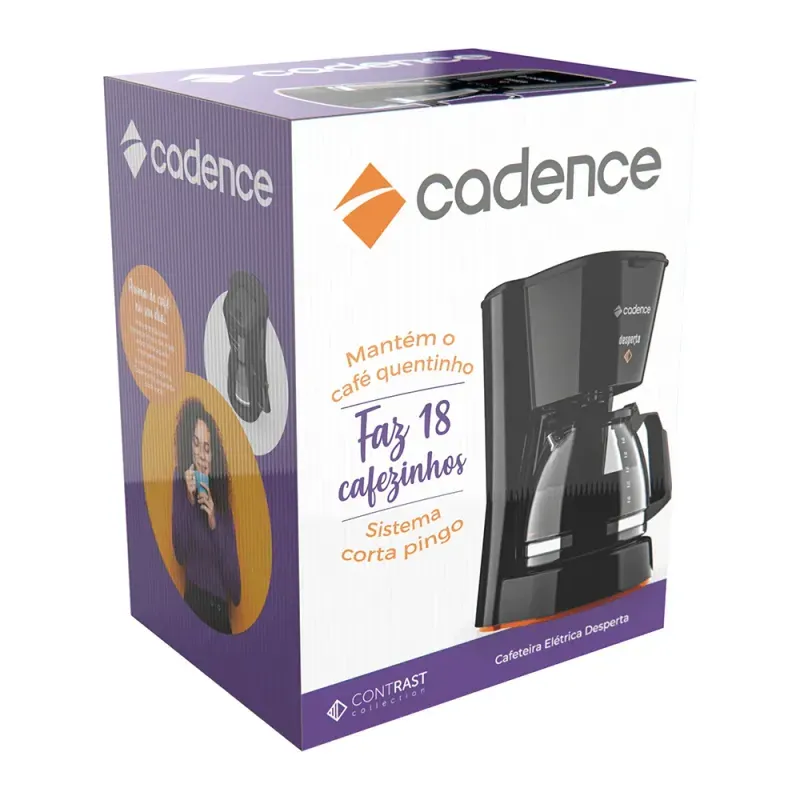 | Conteúdo da Embalagem | 1 Cafeteira Cadence Desperta Contrast, com Filtro Permanente, 18 Xícaras, Jarra de Vidro 750ml, 600W, Preta - CAF338 220V |