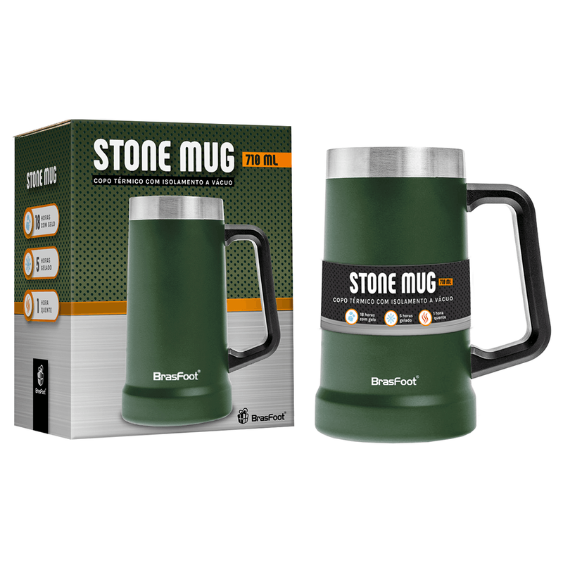 Para um clássico chopp ou cerveja sempre gelados,a Caneca Térmica Stone é o produto. Garantindo que sua bebida fique gelada até o último gole, ele tem uma grande capacidade térmica, mantendo 18 horas com gelo, 5 horas gelado e 1 hora quente isso graças a sua parede dupla com isolamento à vácuo. Quer mais vantagem? O material do copo evita a área externa de suar além de não enferrujar.