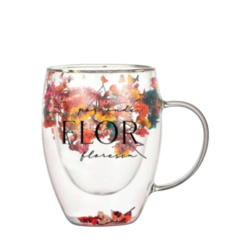 Caneca de Vidro Flor e Amor 320ml - Delicadeza e Afeto em cada Momento
