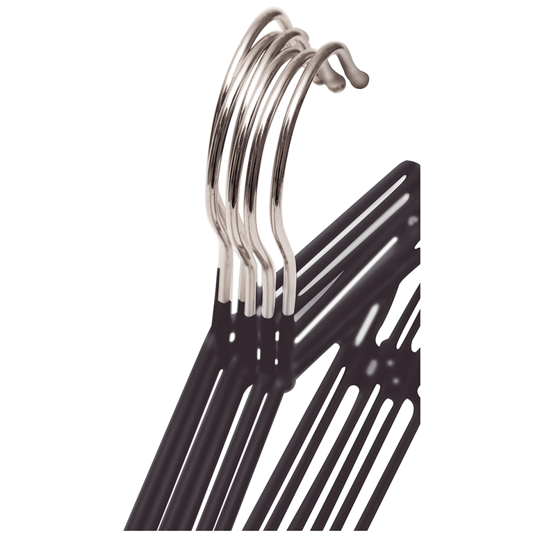 O Kit Cabide Soft Touch com Ganchos garante a organização em seu closet, facilitando o seu dia a dia. Produzidos em aço revestido com PVC, os cabides têm maior resistência e durabilidade, suportando até 10 Kg. Suas curvas delicadas conservam as roupas, evitando tecidos amassados ou com vincos indesejados, e os ganchos são ideais para pendurar roupas com alça. Seu design fino permite a maximização do espaço e o soft touch impede as roupas de deslizarem dos cabides. Use o Kit Cabide Soft Touch com Ganchos para proporcionar leveza e simplificar o seu guarda-roupa.