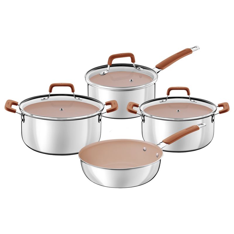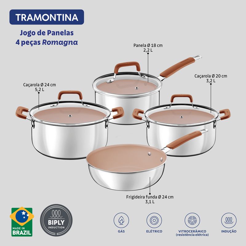 Conjunto de Panelas Tramontina Romagna em Aço Inox com Revestimento Cerâmico - 4 Peças