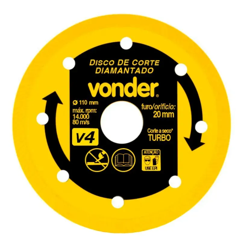| Conteúdo da Embalagem | 1 Disco Diamantado Turbo Vonder V4 110mm, Uso Seco - 1268400000 |