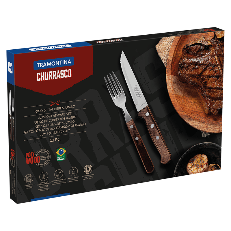 | Composição | 6 Facas Jumbo Churrasco, 6 Garfos Jumbo Churrasco |