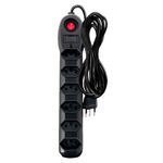 -Seis tomadas no padrão brasileiro 2P+T, com espaçamento entre entradas para acomodar plugs maiores sem interferência.