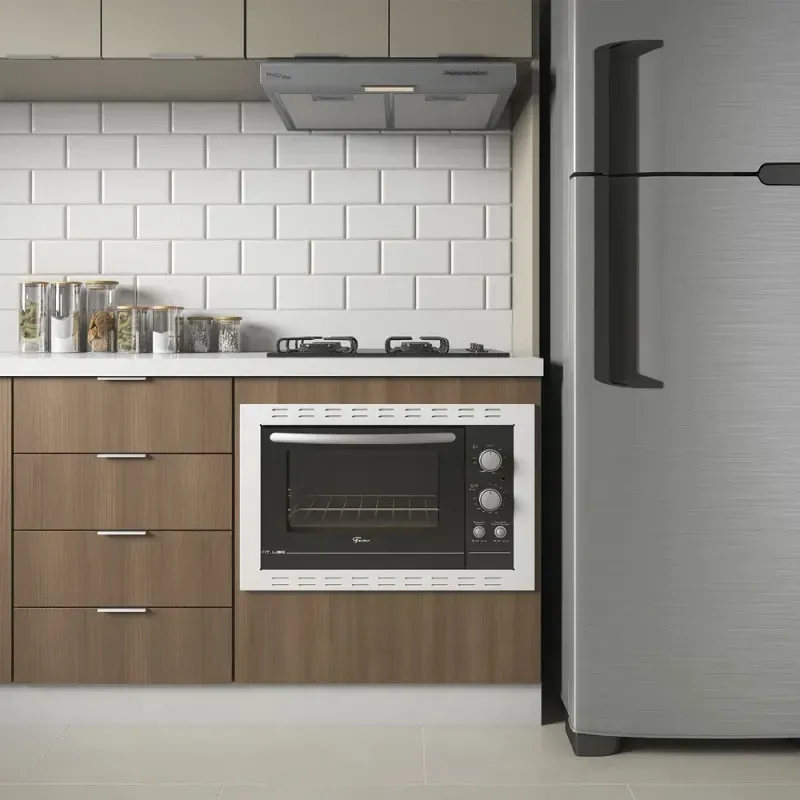 Prepare suas receitas com praticidade e estilo no Forno Elétrico de Embutir Fischer Fit Line 44L, ideal para cozinhas modernas e otimizadas.