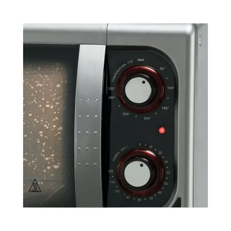 - Lâmpada Interna: facilita a visualização dos assados; - Vidro Duplo: impede a fuga de calor; - Autolimpante: a limpeza ocorre através do processo de volatilização. |