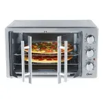 - Portas em formato French Door possuem abertura compacta, ocupam menos espaço na bancada, deixando o espaço em frente às portas livre para utilizar de apoio para assadeiras e formas. Com apenas uma mão você abre as duas portas do forno. - O fundo curvo aliado aos 42 litros permite assar pizzas de até 40cm. - Espeto giratório para cozinhar e dourar de forma uniforme. |