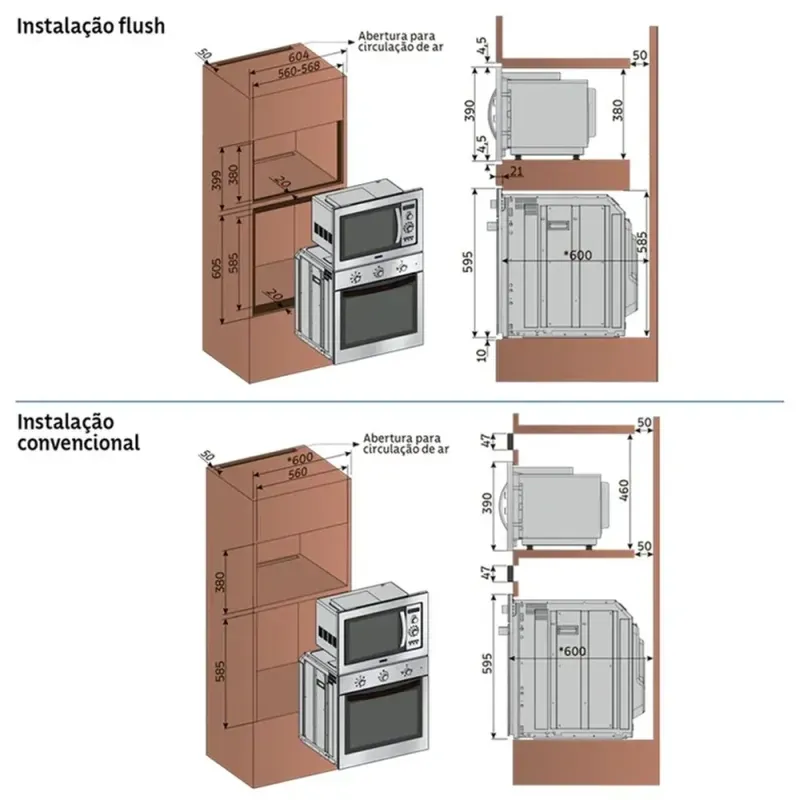 | Diferenciais | - Sete funções: Assar, Assar Combinado, Grill, Turbo Grill, Cozimento Delicado, Aquecimento Superior Combinado, Descongelamento. - Controle mecânico com desligamento automático. - Sistema de resfriamento da parte externa do forno. - Cinco posições para a grelha e as bandejas. - Acompanha 1 grelha e 2 bandejas coletoras. - Lâmpada para iluminação interna. - Porta com vidro triplo. |
