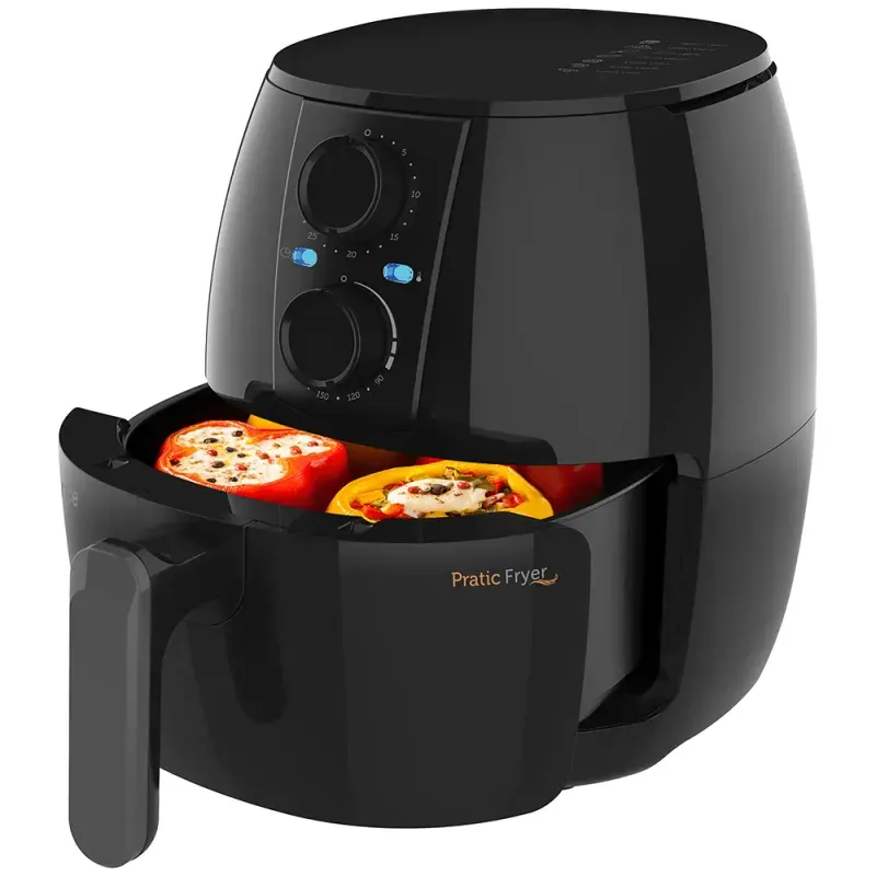 A Fritadeira Multifuncional Sem Óleo Pratic Fryer vai deixar a sua alimentação mais leve, facilitar a sua vida e ainda tornar o seu jeito de fazer comida muito mais prático. Além de compacta e fácil de usar, tem capacidade de 3 litros, onde você pode preparar carnes, empanados, mini bolos, legumes e muito mais!