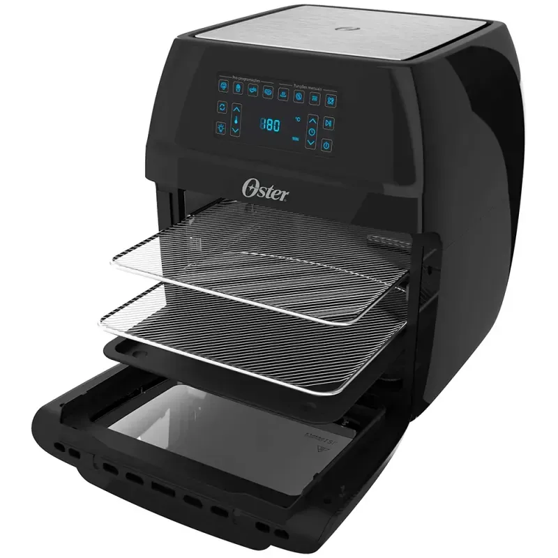 A nova Fritadeira Forno 3 em 1 Oster chega para completar seus momentos na cozinha. Multifunções e com capacidade ampliada, ela traz mais praticidade para a rotina em família, com ainda mais possibilidades de preparos rápidos e saudáveis. Projetado para a vida em família. Mais potente e espaçoso para preparar alimentos maiores e em grandes quantidades.