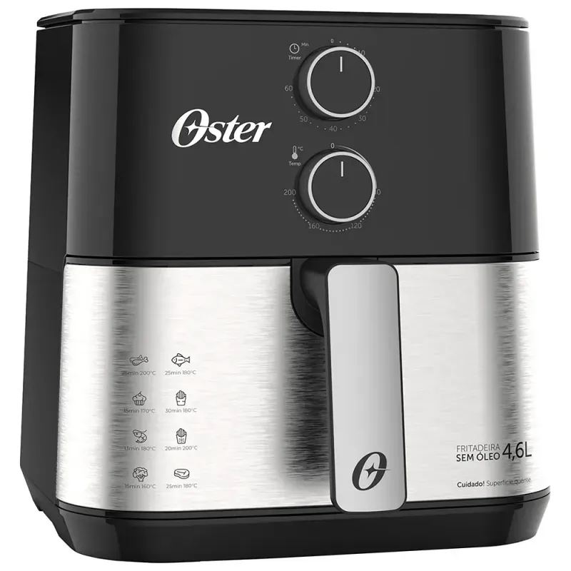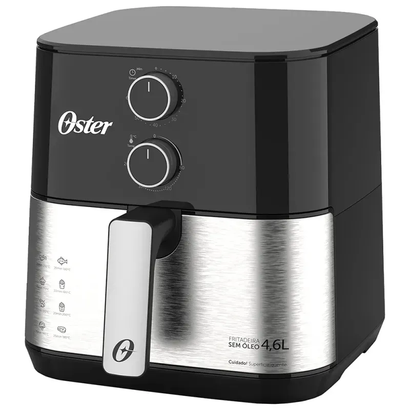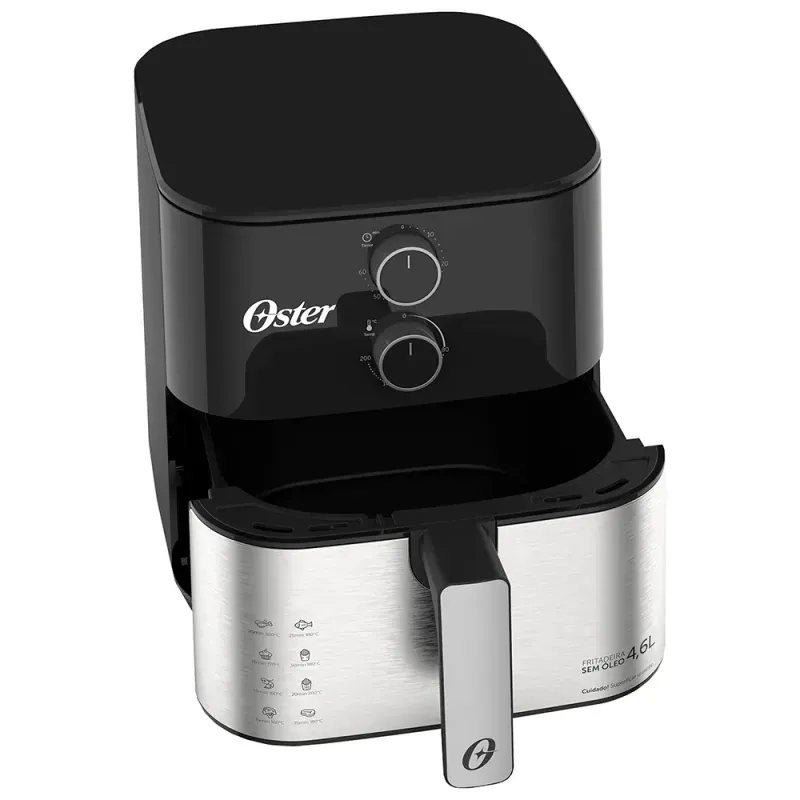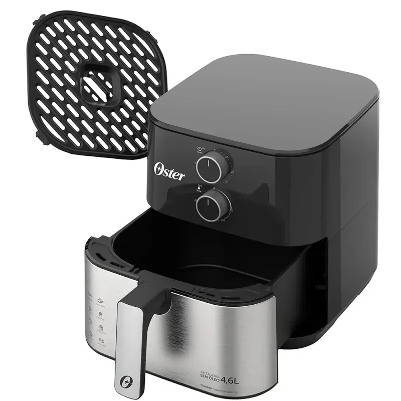 | Conteúdo da Embalagem | 1 Fritadeira sem Óleo Oster Compact, 4,6L, 1500W, Preto e Inox - OFRT520 220V |