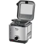 - Frita sem engordurar a cozinha. - Janela de vidro para observar o preparo. - Controle de temperatura até 190°C. - Cesta de fritura removível em aço inox. - Recipiente antiaderente para óleo. - Base antiderrapante. - Luz indicadora de funcionamento. |