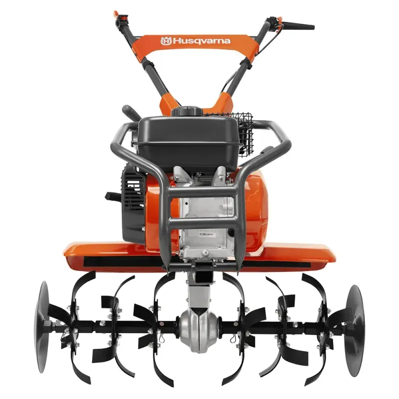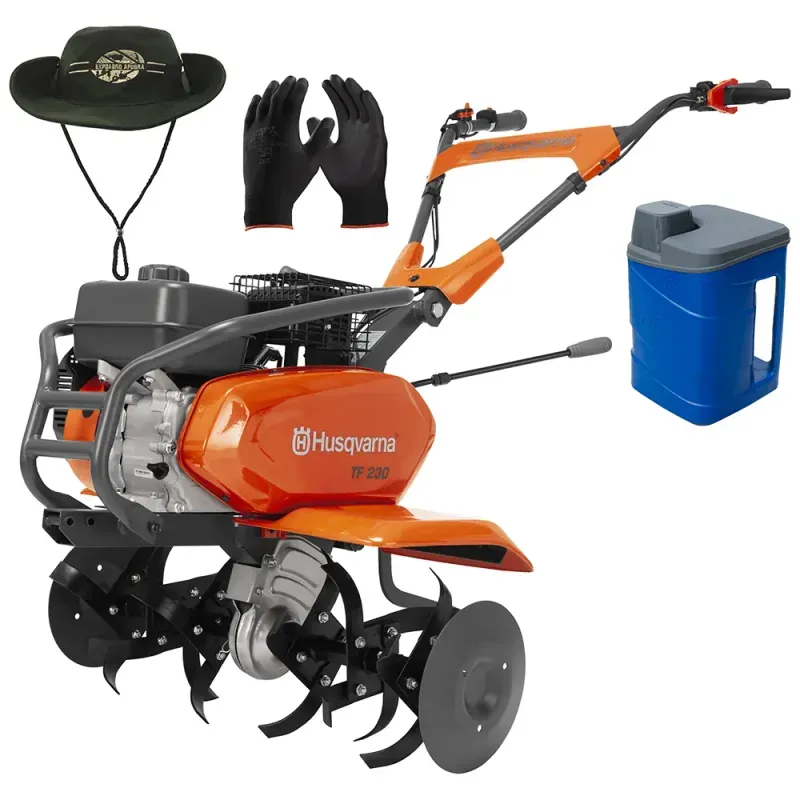 - Motor a gasolina Husqvarna: Potente e confiável. - Protetor de plantas: Protetor de plantas fora da área de trabalho. - Guidão ajustável: Para mais ergonomia. |