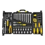 | Conteúdo da Embalagem | 1 maleta plástica, porta-chaves allen/hexagonais, porta-bits, alicates (corte diagonal 6", bico meia-cana 6", bomba d'água 10", universal 8"), chaves de fenda (2 peças), chaves phillips (2 peças), chaves allen/hexagonais (8 peças), chaves combinadas (11 peças), soquetes sextavados encaixe 1/2" (15 peças), catraca encaixe 1/2", extensão 5" encaixe 1/2", junta universal encaixe 1/2", cabo T encaixe 1/2" x 10", soquetes para vela de ignição (2 peças), soquetes sextavados encaixe 1/4" (11 peças), catraca encaixe 1/4", extensões encaixe 1/4" (2" e 4"), extensão flexível 6" encaixe 1/4", junta universal encaixe 1/4", cabo adaptador para bits com catraca encaixe 1/4", bits magnéticos encaixe 1/4" (7 fenda, 8 phillips, 6 allen, 3 quadrados, 7 hexalobular, 3 pozidrive, 4 três pontas), 2 adaptadores, martelo 20 mm, trena 5 m. |