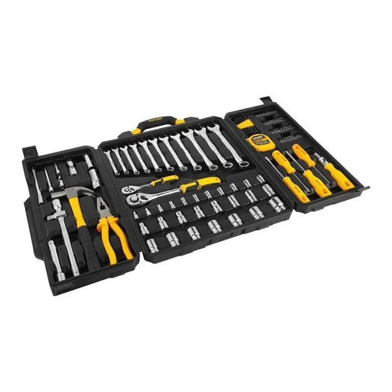 Desenvolvida pela renomada marca Vonder, esta Maleta de Ferramentas com 110 peças é a solução ideal para profissionais e entusiastas que buscam praticidade e versatilidade. Com um design ergonômico e acabamento na cor Preto e Amarelo, o conjunto é fabricado com materiais de alta resistência, como aço cromo vanádio, aço ao cromo, aço forjado, fibra, plástico, borracha e metal, garantindo longa vida útil e performance superior. Acompanhada por uma maleta plástica robusta, que proporciona o encaixe perfeito de cada item, esta maleta não só facilita a organização e o transporte seguro das ferramentas, mas também contribui para a conservação e maior durabilidade de todo o kit. É a escolha perfeita para manutenções e reparos em geral, desde pequenos ajustes domésticos até trabalhos mais complexos.