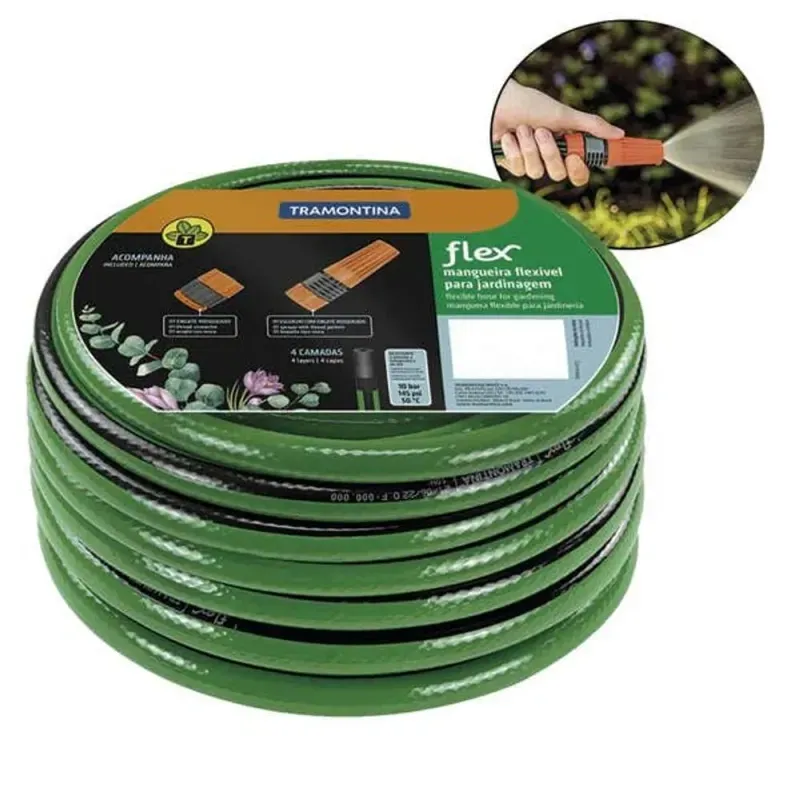 Ideal para uma jardinagem mais prazerosa e confortável, a Mangueira Tramontina Flex oferece flexibilidade e resistência para o cuidado do seu jardim.