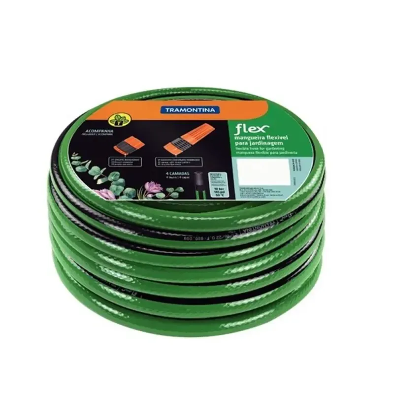 A Mangueira Tramontina Flex de 20 metros é a solução ideal para o cuidado do seu jardim, oferecendo flexibilidade, resistência e praticidade com seu esguicho e engate rosqueado.