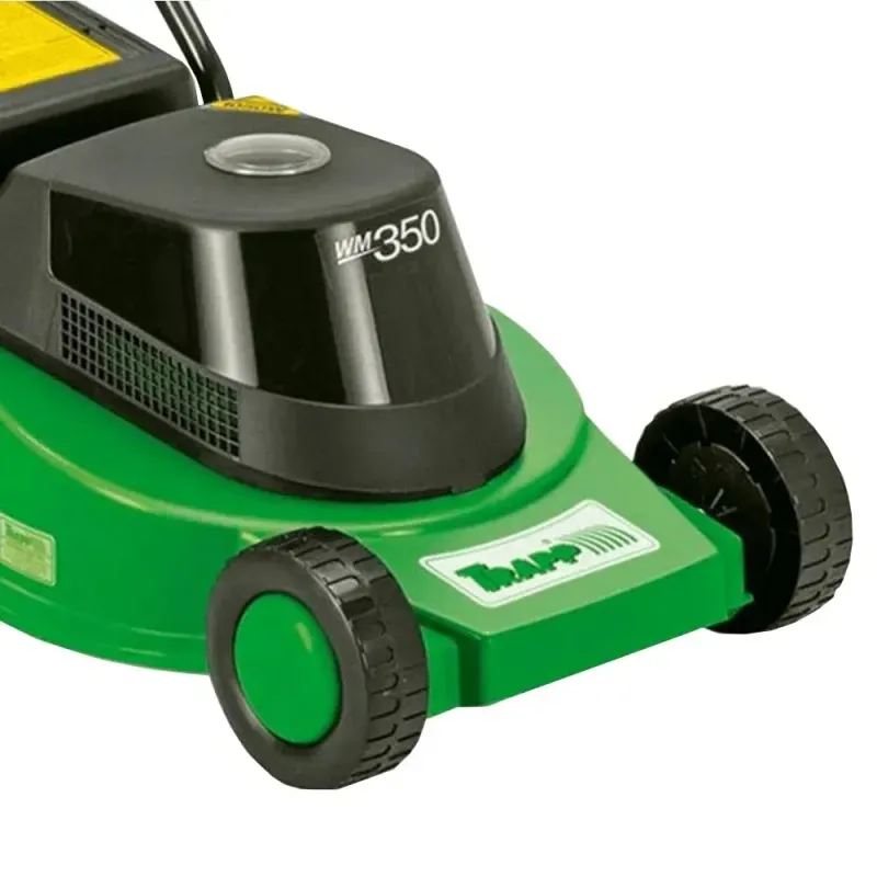 - Trava para Extensão Elétrica. - Rodas de Polietileno de Alta Densidade. - Motores de indução, monofásicos de 2 polos, instalados num compartimento de polietileno de alta densidade (para proteção contra descargas elétricas). - Base: Termoplástica (isolação total contra choques elétricos). - Lâmina: Em aço especial com espessura de 2,55 mm, com têmpera por indução no fio de corte fixada ao motor através de componentes confeccionados em nylon de alta resistência, obtendo total isolação contra choques elétricos. - Regulagem de Altura de Corte: Em 3 posições, com variação de 3,6 a 6,5 cm (sistema de regulagem de altura individual para 2 rodas, que permite efetuar o corte do gramado numa única operação). - Acabamento: Todas as pecas metálicas recebem tratamento anticorrosivo e pintura com tinta a pó de poliéster polimerizado em estufa a 220 °C, garantindo maior durabilidade e acabamento. |