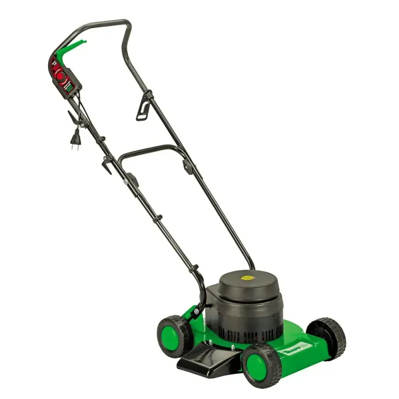 | Diferenciais | - Equipado com Botão Trava de Segurança: Impede o acionamento acidental da máquina, liberando a partida do motor somente quando pressionado. - Chave elétrica interruptora bipolar que permite isolação total, independente da posição do plugue na tomada. - Cabo Ergonômico: Para maior conforto do operador, dobrável, facilitando o transporte e armazenamento. - Trava para extensão elétrica. - Rodas de polietileno de alta densidade. - Motores de indução, monofásicos de 2 polos, instalados num compartimento de polietileno de alta densidade (para proteção contra descargas elétricas). - Base: Em chapa de aço de 1,5 mm de espessura. - Lâmina: Em aço especial, com espessura de 2,35 mm, com têmpera total. - Regulagem de Altura de Corte: Em 3 posições, com variação de 3 a 6 cm (sistema de regulagem de altura por eixo, nas 2 rodas dianteiras e 2 rodas traseiras). - Acabamento: Todas as peças metálicas recebem tratamento anticorrosivo e pintura com tinta a pó de poliéster polimerizado em estufa a 220 °C, garantindo maior durabilidade e acabamento. |