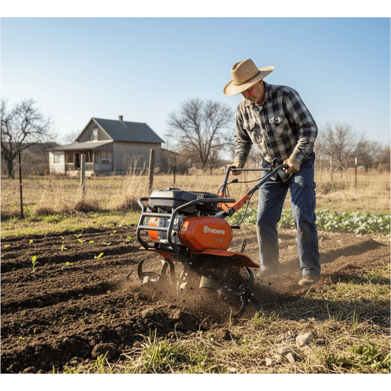 - Motor Husqvarna potente de 4.8/7 HP: Proporciona força e eficiência para trabalhar em terrenos extensos de até 20.000 m², garantindo um cultivo rápido e eficaz.