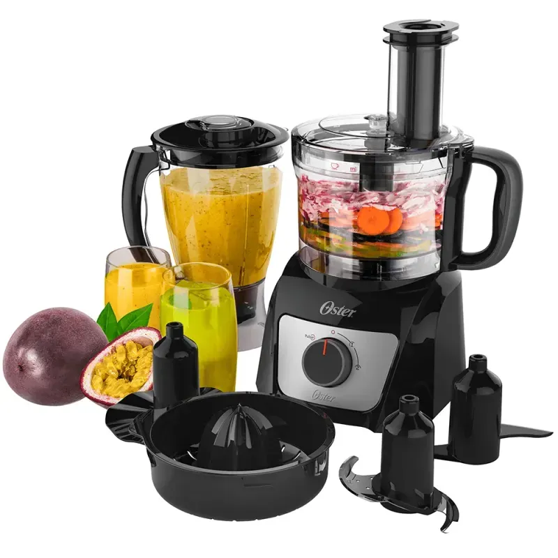 O Multiprocessador de Alimentos Oster 7 em 1 oferece performance, versatilidade e praticidade. Os 7 acessórios vão deixar a sua cozinha completa com um só aparelho. Explore os 7 acessórios para preparar uma variedade de receitas incríveis! Entradas, saladas, mol