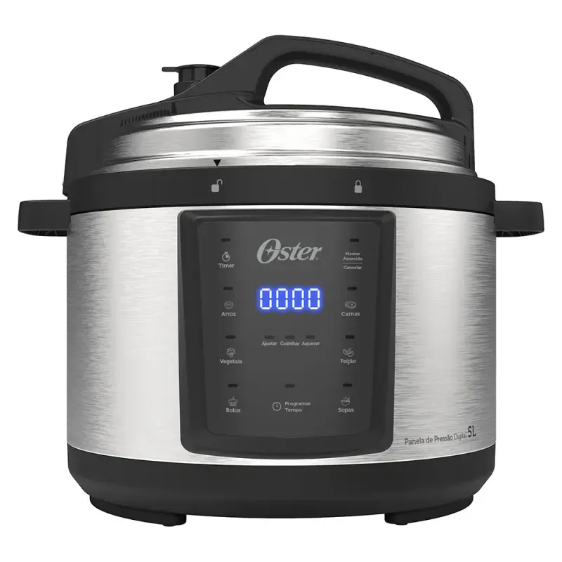 Ideal para quem busca economia, praticidade e segurança, a Oster OPAN920 cozinha rápido com menos uso de água e energia, preservando nutrientes. Seu design em inox/preto é sofisticado e fácil de limpar. Possui painel digital com timer programável (até 24 h) e função manter aquecido. São 6 receitas pré-programadas: arroz, vegetais, carnes, bolos, feijão e sopas. Um utensílio silencioso e versátil para o dia a dia.