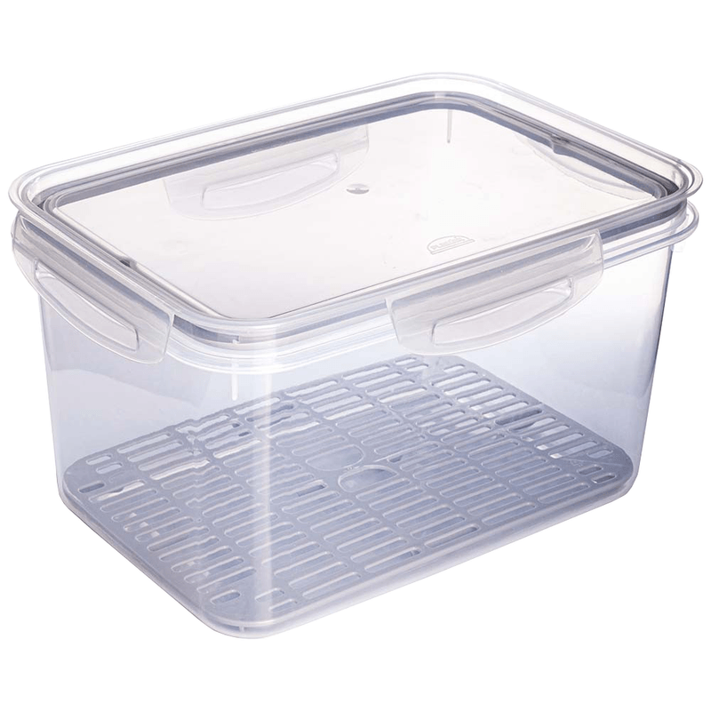 - Duas travas laterais, mais garantia e segurança no fechamento. - Empilhável e com formatos modulares. - Encaixa em qualquer lugar otimizando o espaço do armário. - Tampa transparente que facilita a visualização dos alimentos quando armazenados em gavetas. - Resistente a variação de temperatura de -10°C a 110°C. - Vai ao freezer e ao micro-ondas. Vai ao lava-louças. - Feito em polipropileno (PP), livre de BPA (bisfenol A). - Escorredor interno: ideal para frutas e verduras higienizadas. - Conta com 25 cm de comprimento, 17,5 cm de largura e 14,2 cm de altura. |