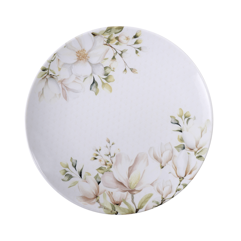 O prato raso Tramontina Magnólia em porcelana decorada 28 centímetros de diâmetro é uma peça que une elegância e sofisticação para elevar a sua mesa a um patamar superior. Inspirada na beleza das magnólias, essa coleção traz um toque de delicadeza inigualável para suas refeições. Feito em porcelana tradicional Tramontina, esse prato possui uma cor branca com nuances de rosé e bege, além de delicados galhos verdes que se harmonizam com a padronagem de leques no fundo da peça. Seu design floral traz um ar de frescor e beleza atemporal para qualquer estação. Perfeito para aqueles que buscam um estilo refinado, sutil e encantador, ele é ideal para criar uma mesa fina e acolhedora, transformando suas refeições em momentos ainda mais especiais!