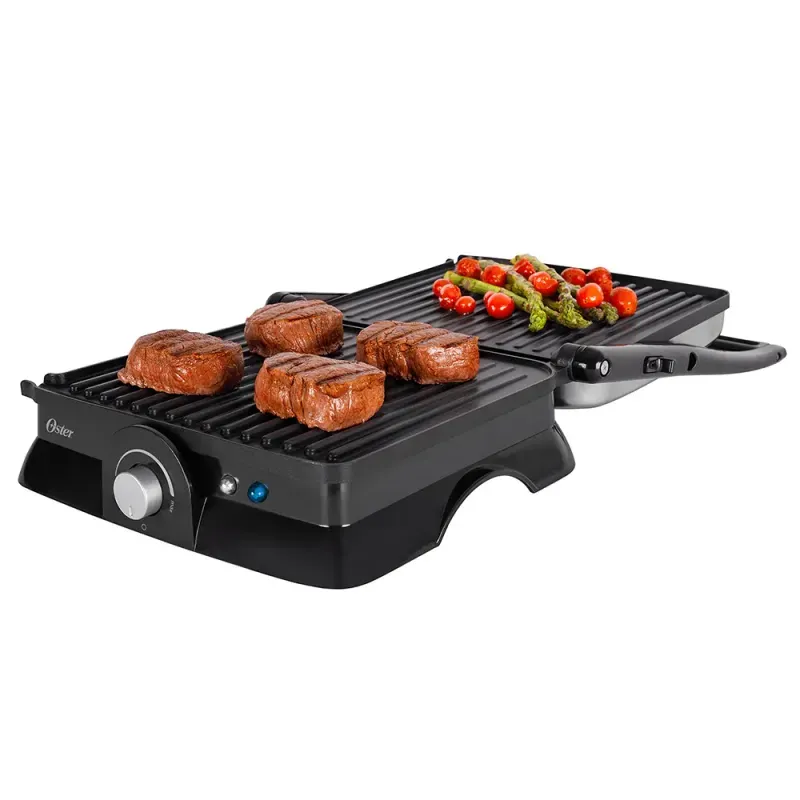 - Conta com abertura de 180º, permitindo que você abra o grill e tenha mais. |