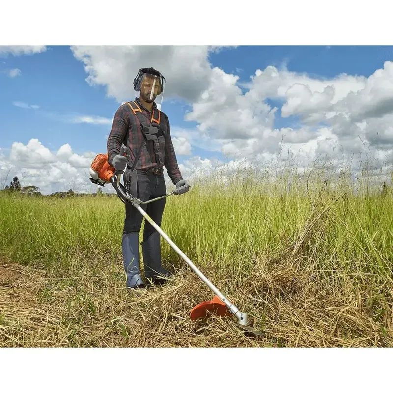 Para sua segurança, sempre utilize equipamentos de proteção individual (EPI), como óculos de segurança, luvas, protetor auricular e calçados adequados, durante a operação da roçadeira.