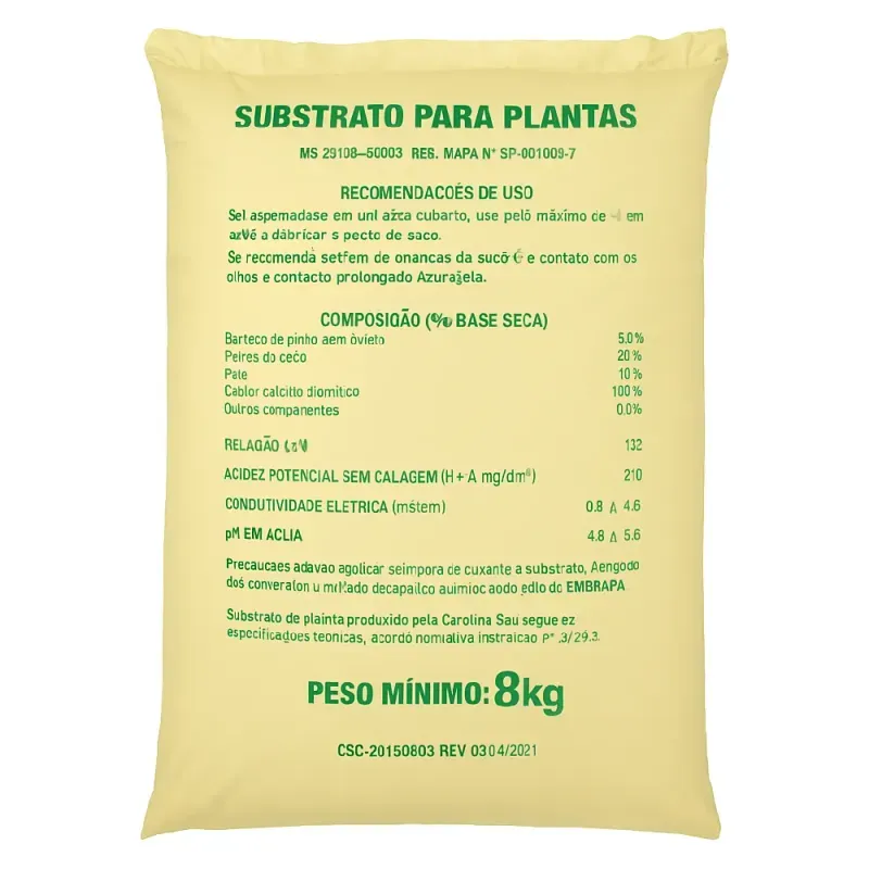 Substrato para plantas carolina ec 0,4 cod.826 45l, ideal para jardinagem, hortas, vasos e plantio em geral, é composto por matéria orgânica selecionada, turfa, casca de pinus compostada, vermiculita e outros componentes que favorecem a nutrição das plantas, melhorando a retenção de água, a aeração e o desenvolvimento radicular. pronto para uso, esse substrato oferece ambiente fértil, leve e balanceado, ideal para flores, hortaliças, folhagens, mudas e plantas ornamentais. sua composição melhora a absorção de nutrientes, estimula o crescimento e reduz o risco de doenças. com embalagem prática de 45 litros, é fácil de transportar e aplicar, sendo perfeito tanto para uso profissional quanto doméstico. escolha carolina ec 0,4 e garanta um cultivo saudável, produtivo e duradouro.