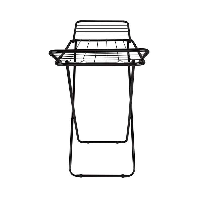 - Sua estrutura foi desenvolvida em tubo de aço com acabamento em pintura epóxi a pó preta, que proporciona um visual moderno. - Assim que recolher suas roupas, você guarda o seu varal dobrado em qualquer lugar. Perfeito para manter a organização da sua casa. |