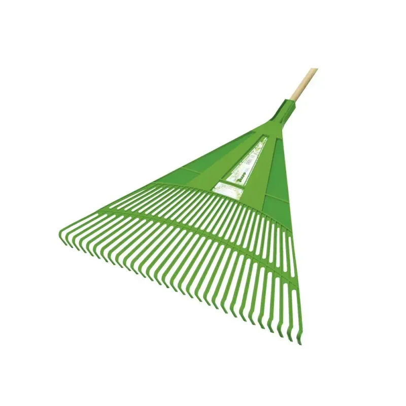 | Material | Ancinho de plático e cabo de madeira maciça |